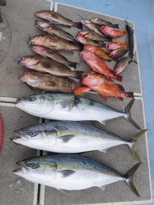 カンパチ〜3,6キロ ハマチ サバ カサゴ ヤガラ |