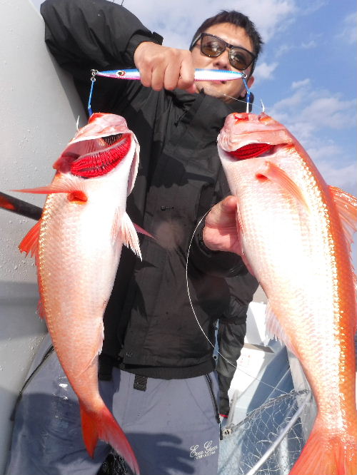 カンパチ〜14,3キロ ハマダイ〜4,2キロ メダイ エビスダイ ヒシダイ レンコダイ カサゴ サバ |